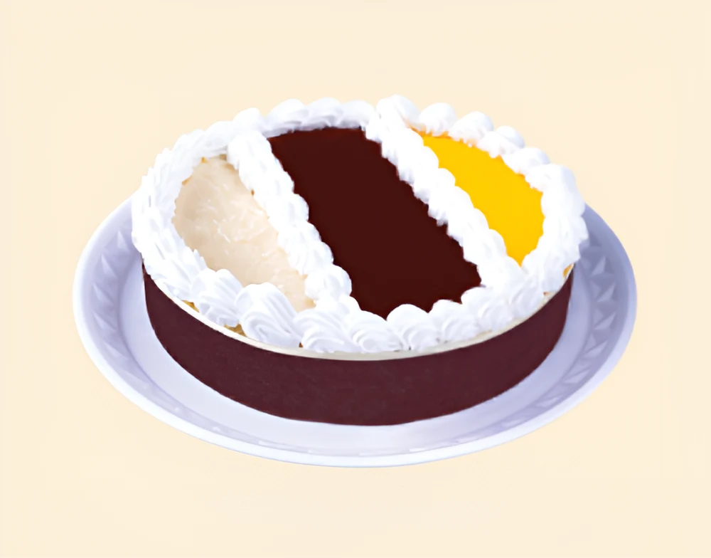 Casq. Bisc.amanteigado Choc, pão de ló branco., brigadeiro meio